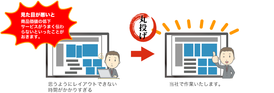 レイアウトなどもすべてお任せください。お客様は指示をするだけ!